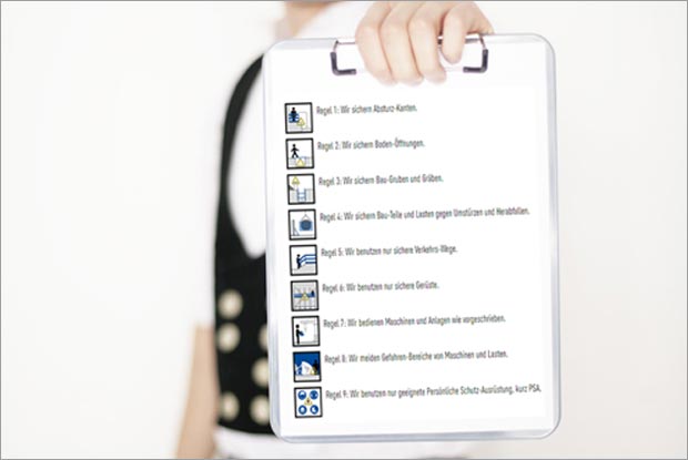 In der Erklärung halten Arbeitgeber und Mitarbeiter schriftlich fest, dass sie auf der Baustelle keine Unfallrisiken eingehen: „Ganz im Sinne der eigenen Sicherheit und Gesundheit, aber auch für die Familien, die Freunde, den Betrieb – für alle.“